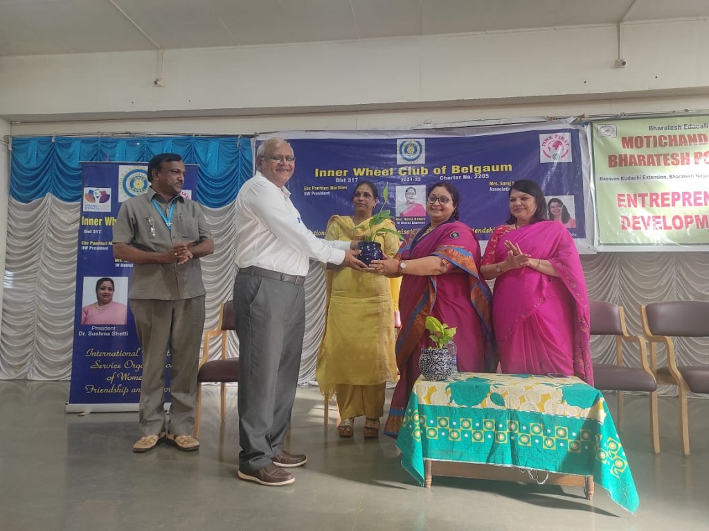 One day workshop for budding entrepreneurs was organized by “Inner Wheel Club of Belagavi” jointly with Entrepreneurship Development Cell of the Institution on Monday 30th May 2022.